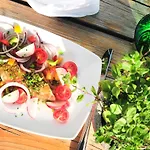 ישנו מסעדה בו האורחים יכולים ליהנות מהארוחה שלהם.